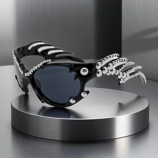 Crafted with a tentacle-inspired frame, these sunglasses deliver a one-of-a-kind look that can’t be ignored. The design is enhanced with cool metal rivet details, giving it that extra punch of rebellious energy. Built with lightweight yet durable materials, they sit comfortably on your face while offering full UV protection to keep your eyes safe under the sun.